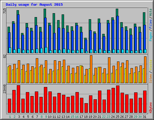 | Day | Hits | Files | Pages | Visits | Sites | KBytes | ||||||
